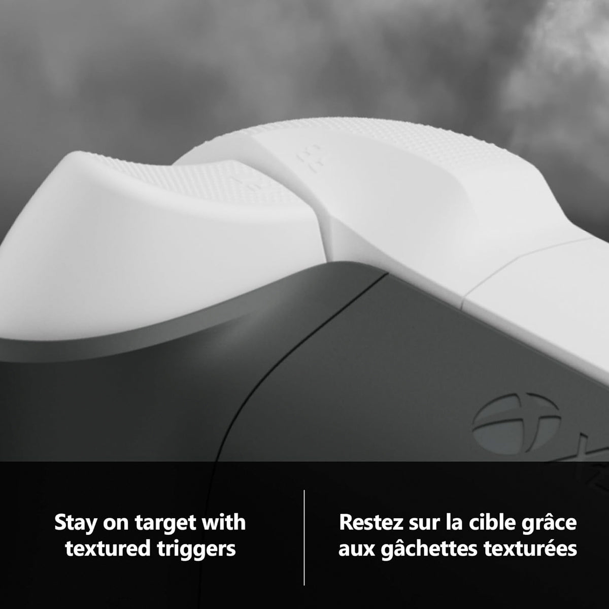 *Consulta xbox.com/controller-compatibility. Compatible con juegos que admiten control. La duración de la batería varía significativamente según el uso, accesorios conectados, audífonos y otros factores. Pruebas realizadas por Microsoft con pilas AA estándar en unidades de preproducción. La asignación de botones está disponible mediante la aplicación Accesorios de Xbox para Xbox Series X|S, Xbox One y Windows 10/11. En PC, se requiere un cable USB-C compatible (se vende por separado).